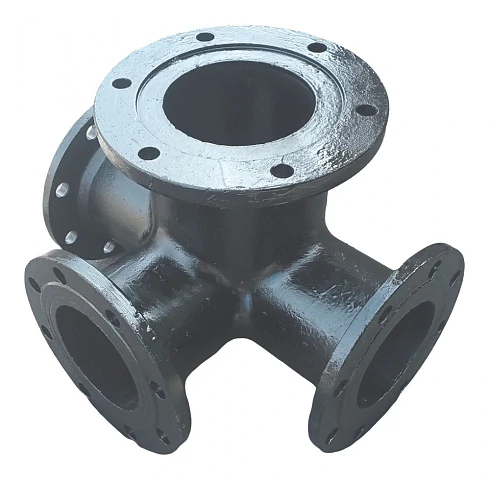 Тройник фланцевый с пожарной подставкой может изготавливаться из стали или чугуна. Служит незаменимым элементом устройства пожарного крана, который подает воду из центрального трубопровода в водоотвод спасателей.