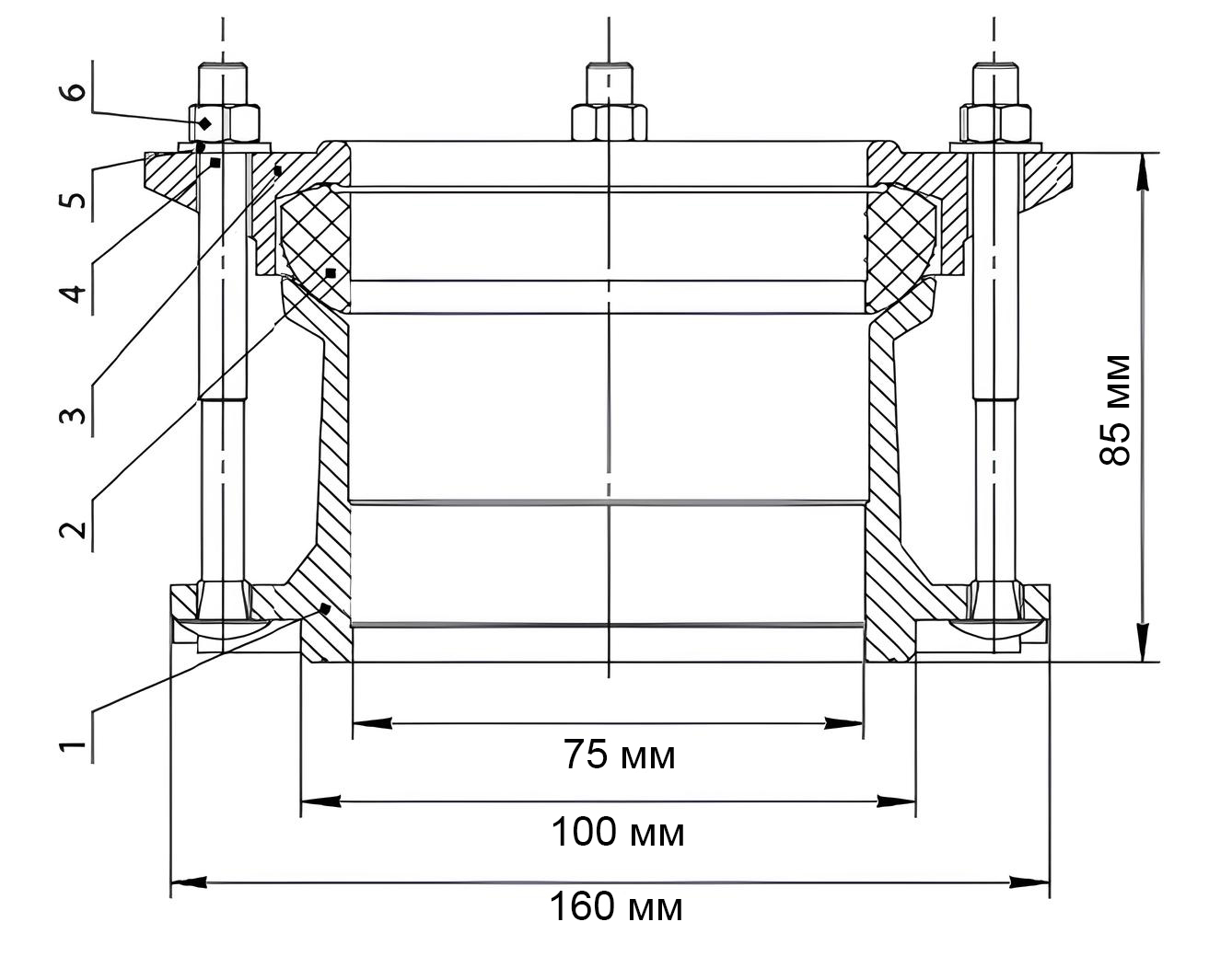 Присоединение к трубопроводу | подходит для соединения любых типов труб исключая ПЭ с ответным фланцем |