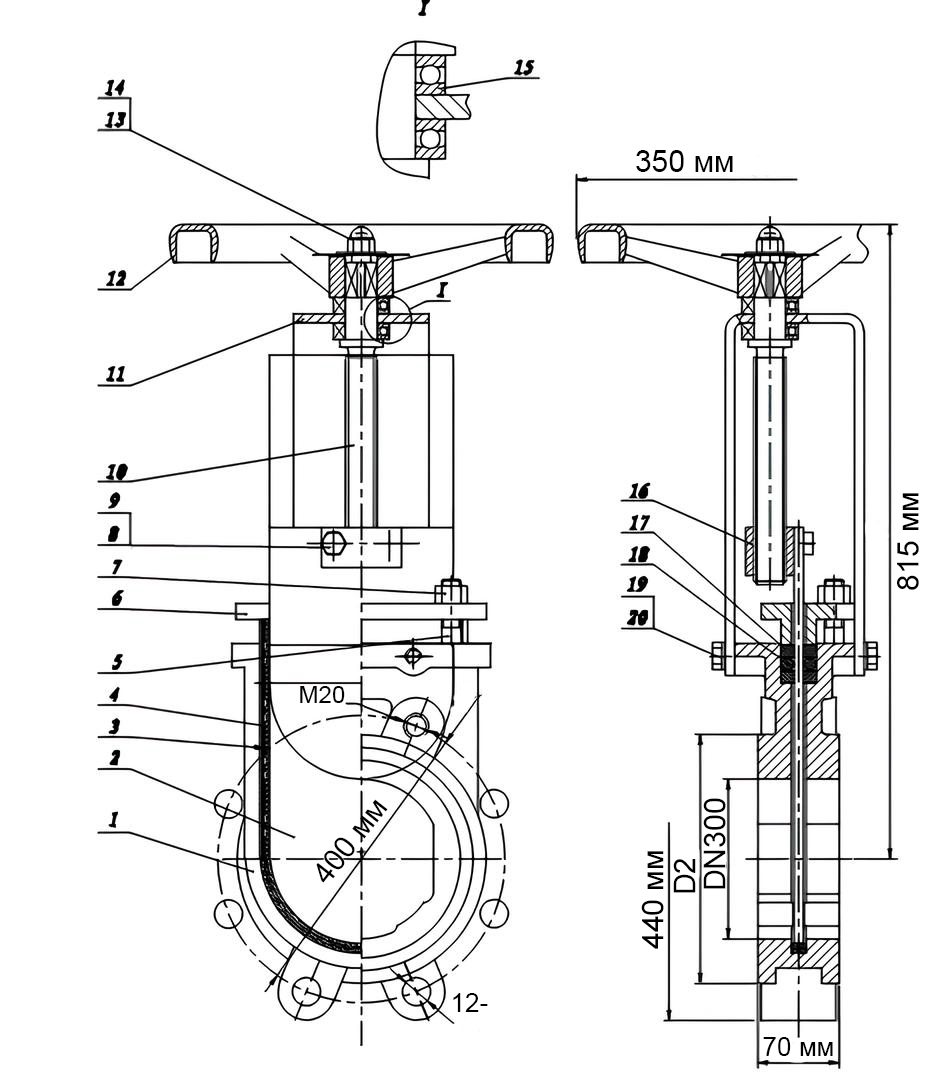Привод | Ду50 – 400 Маховик, Ду500 – 1200 Редуктор |